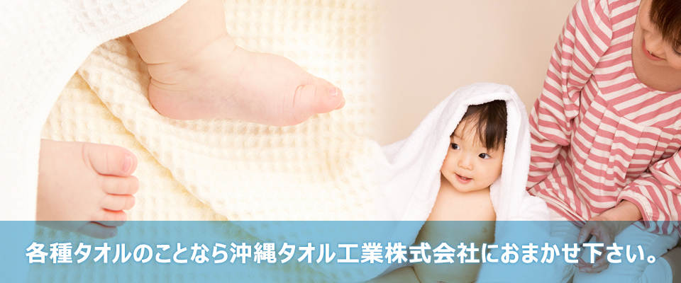 那覇市首里石嶺町にある「沖縄タオル工業株式会社」です。おかげさまで創業60年を迎えることができました。偏にお客様のおかげと深く感謝申し上げます。私たち沖縄タオルは長年タオルに携わってきた知識とノウハウを生かしながら、新しいマインドも取り入れ、お客様のニーズに常にベストの応えが出せるよう日々頑張ります。今後とも 末永くご愛顧のほど宜しくお願い申し上げます。