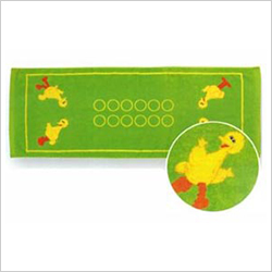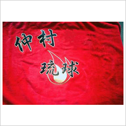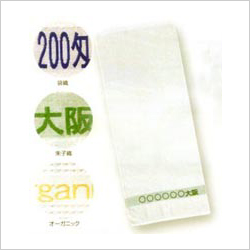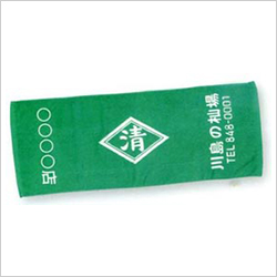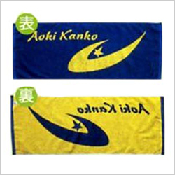 既成タオルのスソの平地部分にプリントします。既成のタオルを使用しますので、手軽ですが、枚数が少ない場合はかなり割高になります。版代が別途かかります。